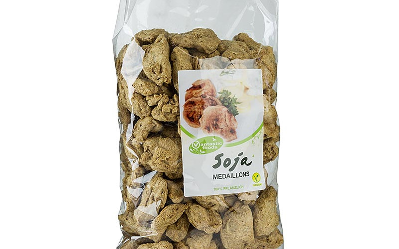 Προθερμαίνουμε το τηγάνι μας, βάζουμε λίγο ελαιόλαδο και το ένα τέταρτο της ποσότητας της σόγιας, και τα τσιγαρίζουμε καλά και από της δυο πλευρές.
